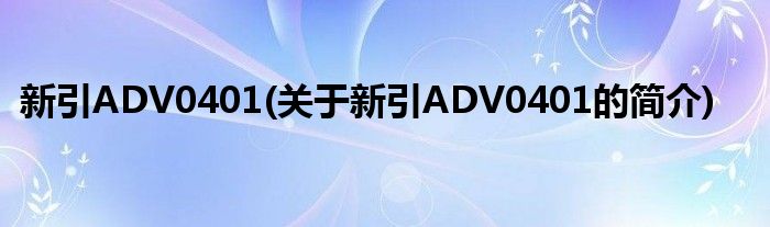 大家好,新引ADV0401,关于新引ADV0401的简介很多人还不知道,现在让我们一起来看看吧!