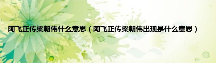 以上就是【阿飞正传梁朝伟什么意思,阿飞正传梁朝伟出现是什么意思】相关内容。