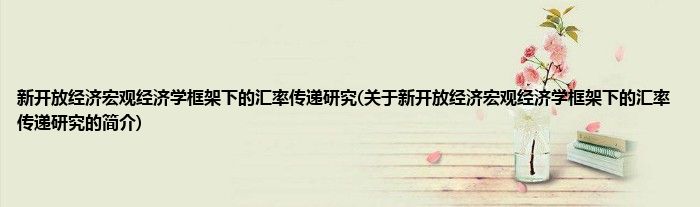 本文关于新开放经济宏观经济学框架下的汇率传递研究的简介就讲解完毕,希望对大家有所帮助。