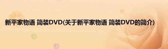 本文关于新平家物语 简装DVD的简介就讲解完毕,希望对大家有所帮助。