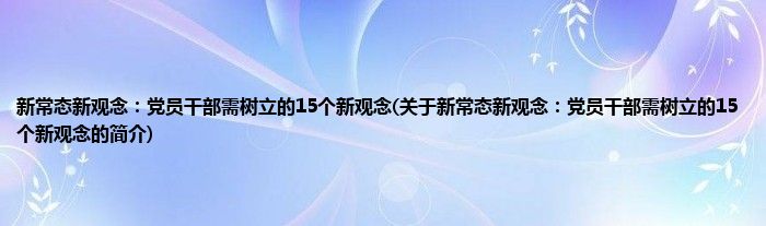 本文关于新常态新观念:党员干部需树立的15个新观念的简介就讲解完毕,希望对大家有所帮助。