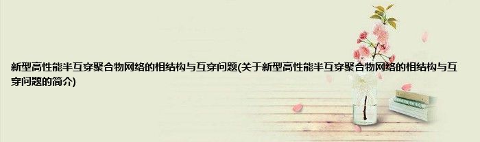 本文关于新型高性能半互穿聚合物网络的相结构与互穿问题的简介就讲解完毕,希望对大家有所帮助。
