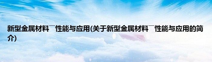 大家好,新型金属材料――性能与应用,关于新型金属材料――性能与应用的简介很多人还不知道,现在让我们一起来看看吧!