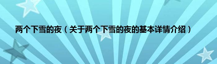 本文关于两个下雪的夜的基本详情介绍就讲解完毕,希望对大家有所帮助。