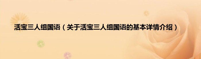 大家好我是小蝌蚪,活宝三人组国语,关于活宝三人组国语的基本详情介绍很多人还不知道,那么现在让我们一起来看看吧!