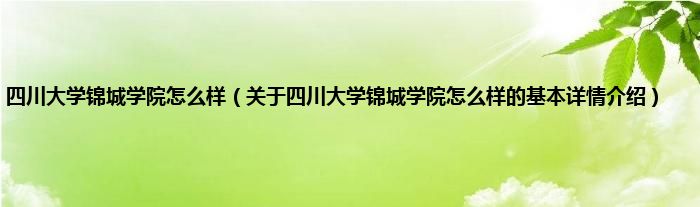 本文关于四川大学锦城学院怎么样的基本详情介绍就讲解完毕,希望对大家有所帮助。