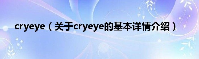 大家好我是小蝌蚪,cryeye,关于cryeye的基本详情介绍很多人还不知道,那么现在让我们一起来看看吧!
