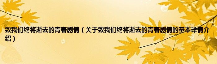 本文关于致我们终将逝去的青春剧情的基本详情介绍就讲解完毕,希望对大家有所帮助。