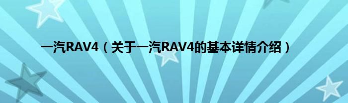 本文关于一汽RAV4的基本详情介绍就讲解完毕,希望对大家有所帮助。