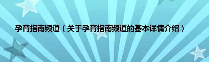 本文关于孕育指南频道的基本详情介绍就讲解完毕,希望对大家有所帮助。