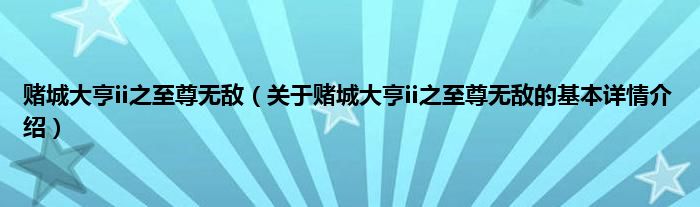 本文关于赌城大亨ii之至尊无敌的基本详情介绍就讲解完毕,希望对大家有所帮助。
