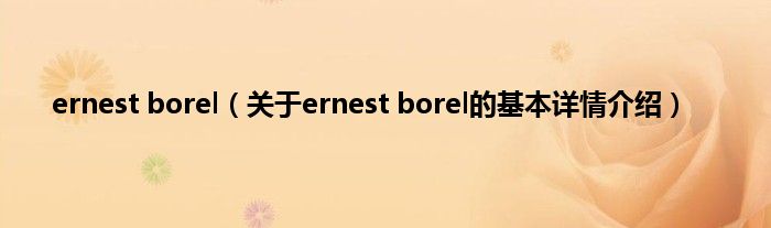 本文关于ernest borel的基本详情介绍就讲解完毕,希望对大家有所帮助。