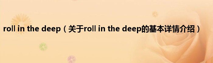 本文关于roll in the deep的基本详情介绍就讲解完毕,希望对大家有所帮助。