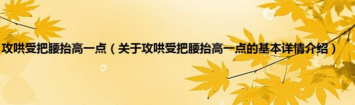 本文关于攻哄受把腰抬高一点的基本详情介绍就讲解完毕,希望对大家有所帮助。