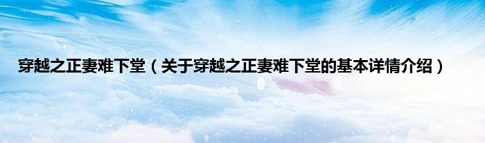 本文关于穿越之正妻难下堂的基本详情介绍就讲解完毕,希望对大家有所帮助。