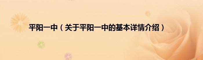本文关于平阳一中的基本详情介绍就讲解完毕,希望对大家有所帮助。