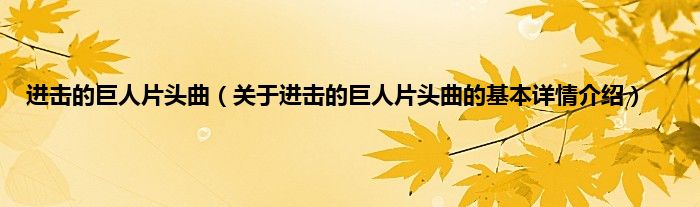 本文关于进击的巨人片头曲的基本详情介绍就讲解完毕,希望对大家有所帮助。