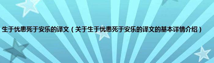 本文关于生于忧患死于安乐的译文的基本详情介绍就讲解完毕,希望对大家有所帮助。