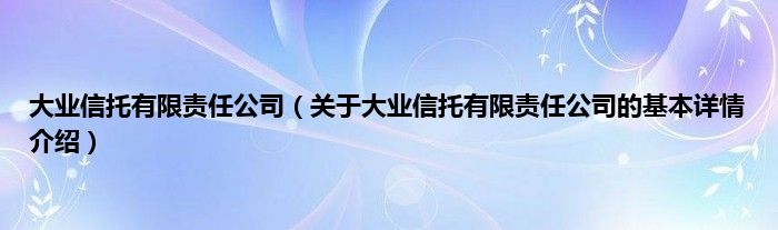 本文关于大业信托有限责任公司的基本详情介绍就讲解完毕,希望对大家有所帮助。