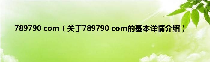 本文关于789790 com的基本详情介绍就讲解完毕,希望对大家有所帮助。