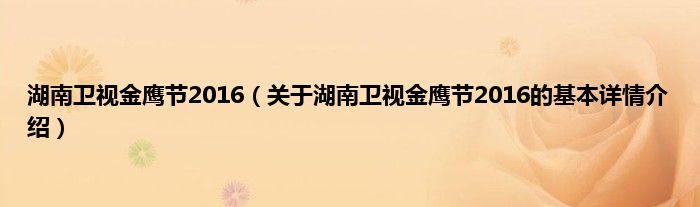 本文关于湖南卫视金鹰节2016的基本详情介绍就讲解完毕,希望对大家有所帮助。