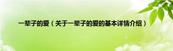 本文关于一辈子的爱的基本详情介绍就讲解完毕,希望对大家有所帮助。