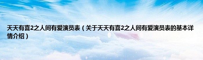 本文关于天天有喜2之人间有爱演员表的基本详情介绍就讲解完毕,希望对大家有所帮助。