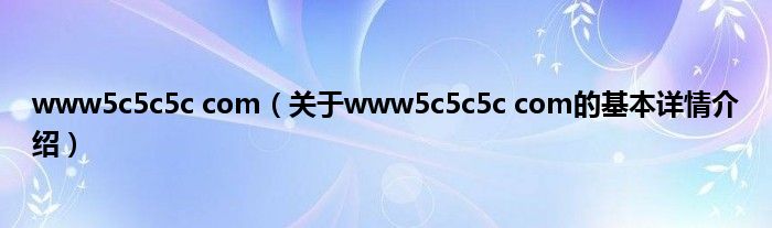本文关于www5c5c5c com的基本详情介绍就讲解完毕,希望对大家有所帮助。