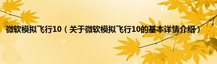 本文关于微软模拟飞行10的基本详情介绍就讲解完毕,希望对大家有所帮助。