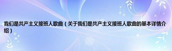 本文关于我们是共产主义接班人歌曲的基本详情介绍就讲解完毕,希望对大家有所帮助。