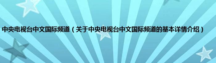 本文关于中央电视台中文国际频道的基本详情介绍就讲解完毕,希望对大家有所帮助。