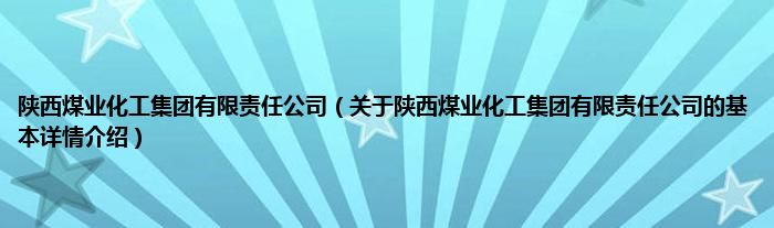 本文关于陕西煤业化工集团有限责任公司的基本详情介绍就讲解完毕,希望对大家有所帮助。