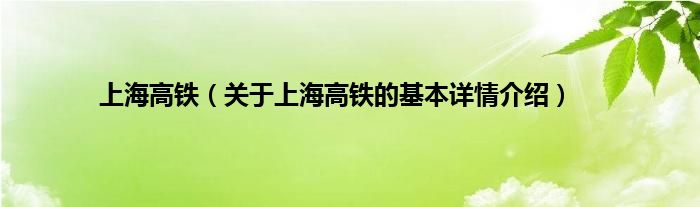 本文关于上海高铁的基本详情介绍就讲解完毕,希望对大家有所帮助。