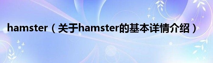本文关于hamster的基本详情介绍就讲解完毕,希望对大家有所帮助。