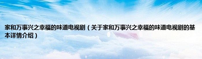 本文关于家和万事兴之幸福的味道电视剧的基本详情介绍就讲解完毕,希望对大家有所帮助。