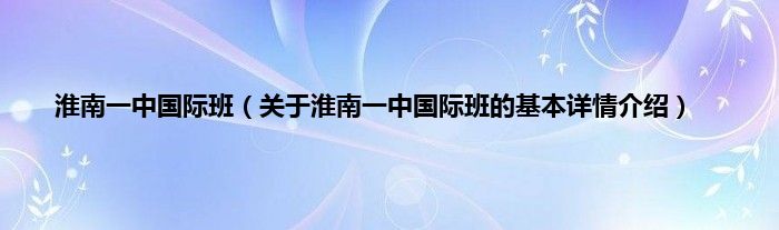 本文关于淮南一中国际班的基本详情介绍就讲解完毕,希望对大家有所帮助。