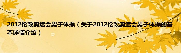 2012伦敦奥运会男子体操(关于2012伦敦奥运会男子体操的基本详情介绍)