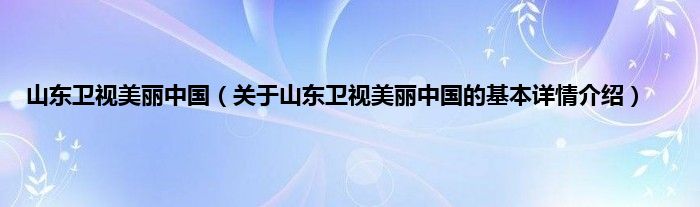 本文关于山东卫视美丽中国的基本详情介绍就讲解完毕,希望对大家有所帮助。