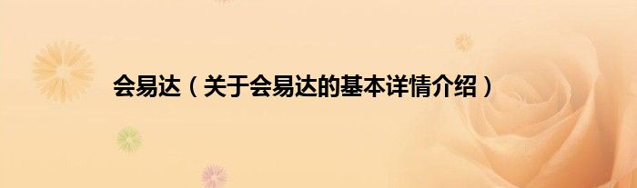 本文关于会易达的基本详情介绍就讲解完毕,希望对大家有所帮助。