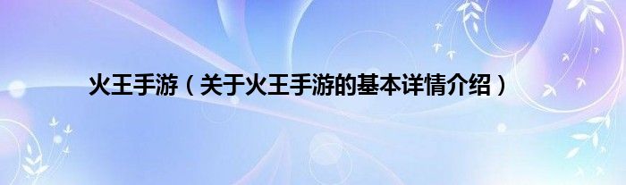 火王手游(关于火王手游的基本详情介绍)