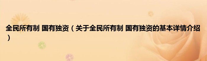 本文关于全民所有制 国有独资的基本详情介绍就讲解完毕,希望对大家有所帮助。