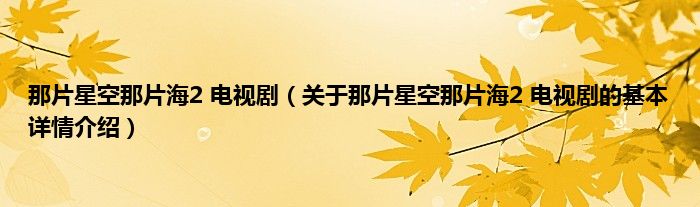 本文关于那片星空那片海2 电视剧的基本详情介绍就讲解完毕,希望对大家有所帮助。