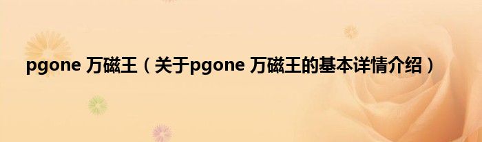 本文关于pgone 万磁王的基本详情介绍就讲解完毕,希望对大家有所帮助。