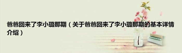 本文关于爸爸回来了李小璐那期的基本详情介绍就讲解完毕,希望对大家有所帮助。