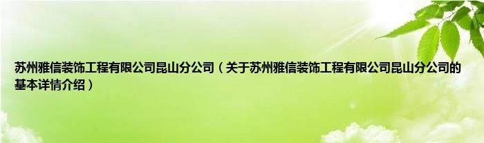 本文关于苏州雅信装饰工程有限公司昆山分公司的基本详情介绍就讲解完毕,希望对大家有所帮助。