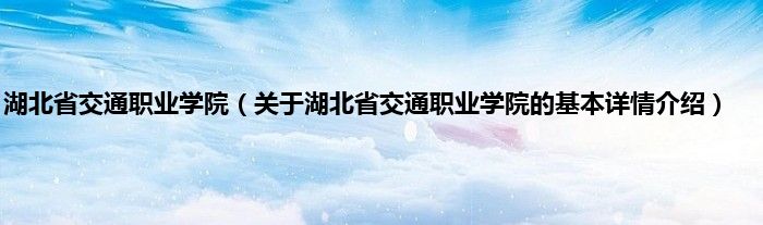 本文关于湖北省交通职业学院的基本详情介绍就讲解完毕,希望对大家有所帮助。
