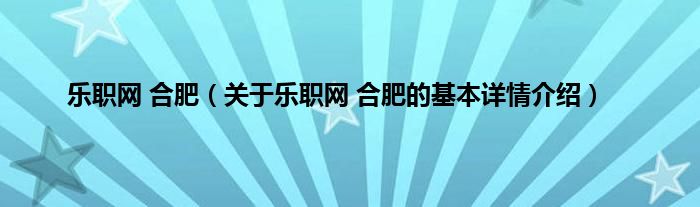本文关于乐职网 合肥的基本详情介绍就讲解完毕,希望对大家有所帮助。