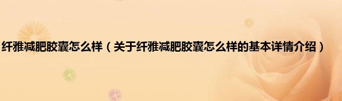 本文关于纤雅减肥胶囊怎么样的基本详情介绍就讲解完毕,希望对大家有所帮助。