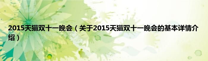 本文关于2015天猫双十一晚会的基本详情介绍就讲解完毕,希望对大家有所帮助。
