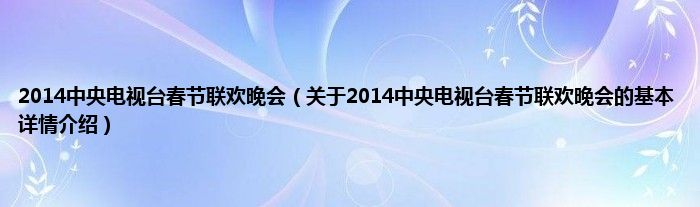 本文关于2014中央电视台春节联欢晚会的基本详情介绍就讲解完毕,希望对大家有所帮助。